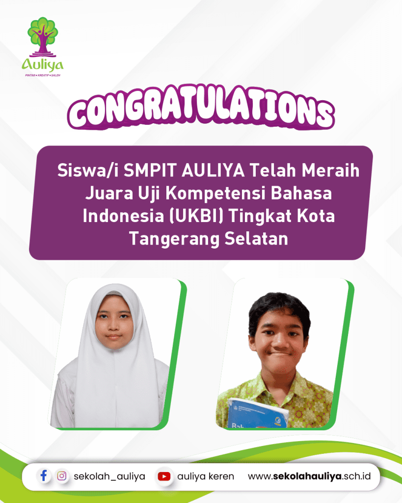 Alhamdulillah, Selamat kepada SMPIT AULIYA yang berhasil meraih prestasi dalam Uji Kompetensi Bahasa Indonesia (UKBI) tingkat Kota Tangerang Selatan